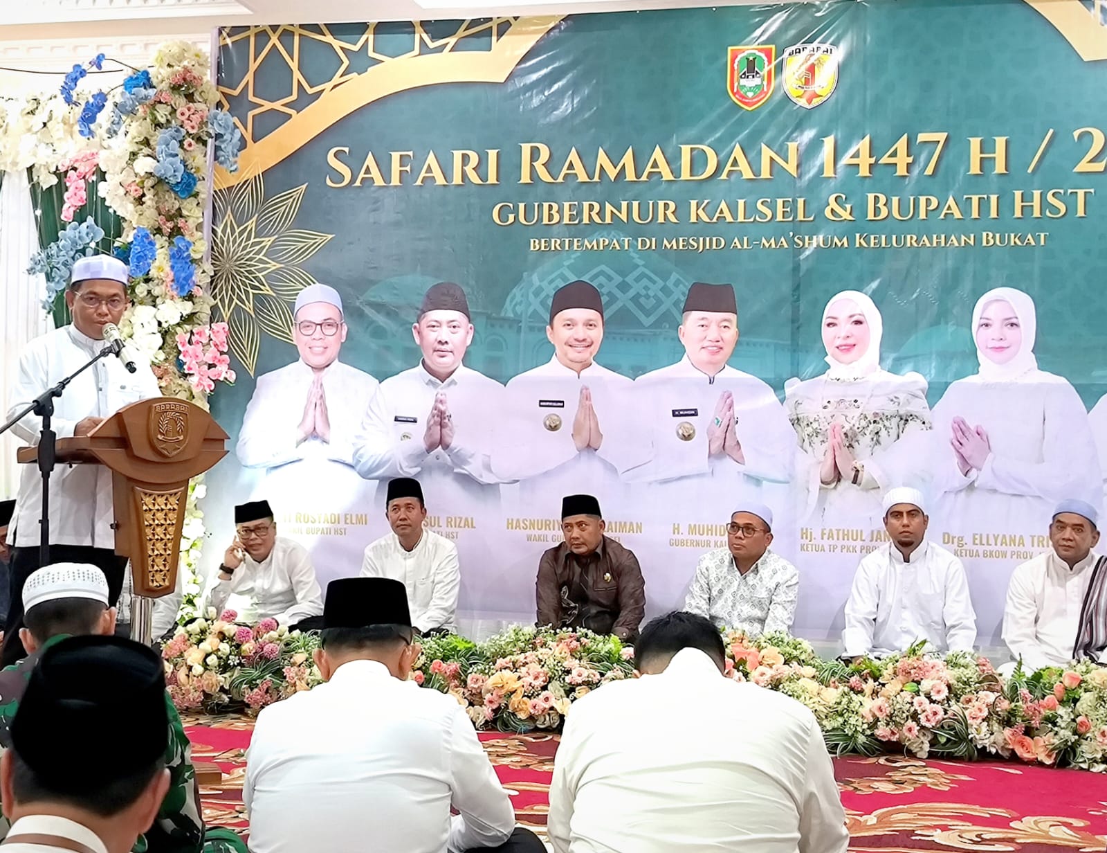 BARABAI, KaltimRaya.com — Ratusan warga antusias mengikuti Safari Ramadhan Gubernur Kalimantan Selatan (Kalsel) dan Bupati Hulu Sungai Tengah (HST) di Masjid Al Ma’shum, Kelurahan Bukat, Barabai, Sabtu (14/3/2026). Gubernur H Muhidin sendiri berhalangan hadir, kecuali diwakili Kepala Biro Kesra Setprov Kalsel, H Fahrurazi.